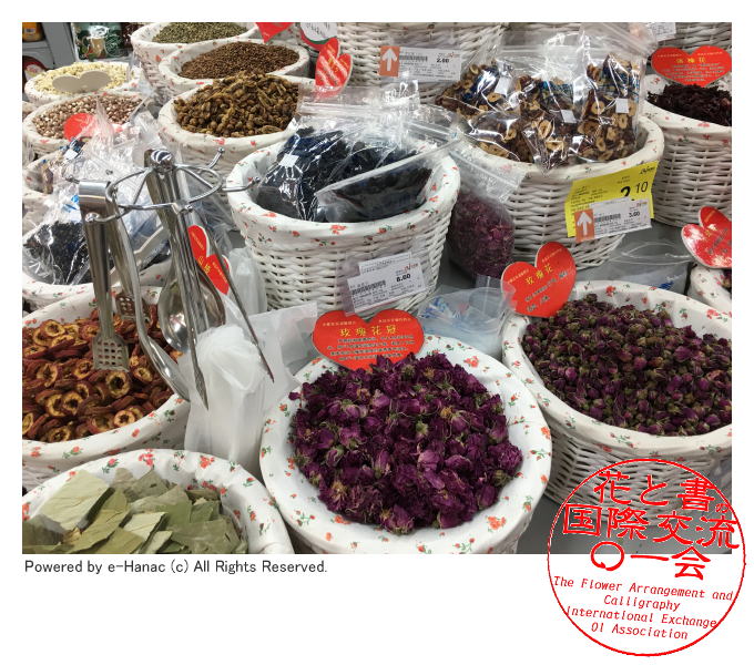 モールでは興味深く中国の生活に触れました。卵の山はバラ売りでびっくり。お茶は山東省は緑茶の雪青(シュエチィン、日本語=せつせい)と浮来青(フーライチィン、日本語=ふらいせい)の生産地ですが、中国茶の葉は二十種類ほど量り売りしていました。