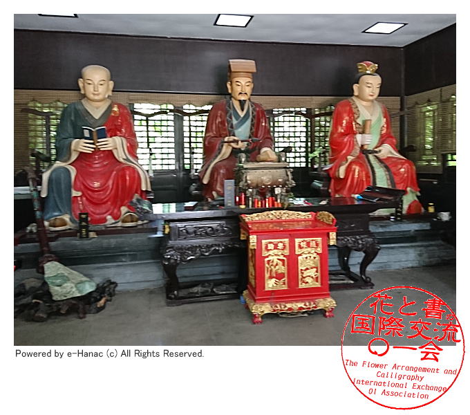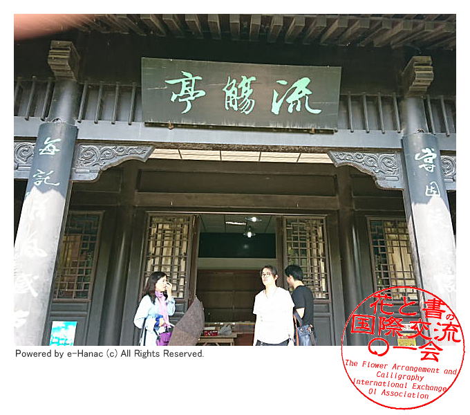 「王義之故居」二つ目、「曲水流觴」というのは、曲がりくねった小川(=曲水)に流された(=流)酒盃(=觴)が自分の所に来るまでに歌を詠むという優雅な遊びのこと。この「曲水流觴」の清流の脇にあるのが、この「流觴亭」で、字の如く「流れてくる盃」の風流な遊びを楽しんだ王義之たちのあずまやという意味です。